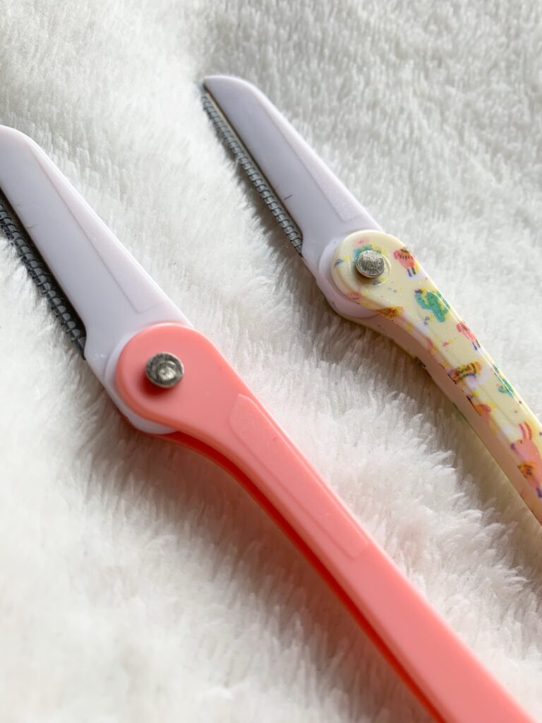Using the hand that isn’t dermaplaning, pull your skin taut. This is will prevent continuous tugging of the skin and reduces the risk of cuts. In the other hand, hold your razor, I personally like the have a firm grip of the handle with my index finger to stabilise the razor. I feel like this gives me more control and helps me to be more concise with the strokes.